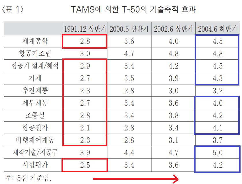 DC인사이드 군사갤러리에 올라온 자료 사진을 통해서도 T-50 개발을 통해 어느 정도의 전투기 관련 기술을 축적할 수 있었는지를 가늠해 볼 수 있는데요. 전투기 전문가는 KF-21의 밑거름이 된 T-50 개발은 거의 공짜로 올라탄 ‘무임승차’에 가까울 정도의 특혜였다는 이야기를 하고 있습니다. (DC인사이드 군사갤러리 자료출처: 한·미 간 T-50 항공기 공동개발을 위한 전략적 제휴 분석과 정책과제 산업연구원 연구보고서 108페이지)