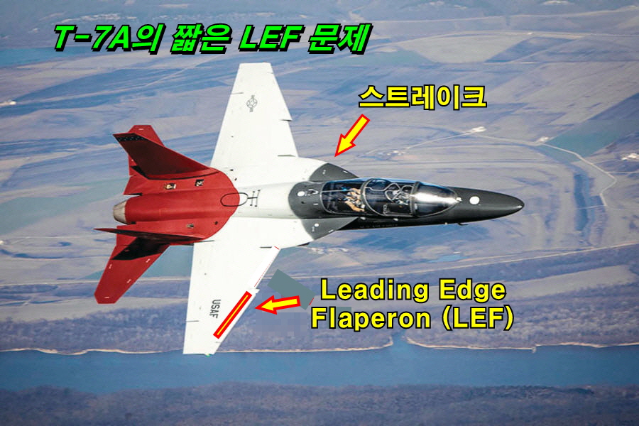 하지만 문제는 T-7A의 Leading edge Flaperon의 길이를 슈퍼호넷의 그것과 비교해 보면 확연하게 짧으며 이는 명백하게 슈퍼호넷과 다른 점이다. 플래퍼론이 길면 그만큼 추가적인 설계 및 동력계통이 필요하고 이는 곧 비용과 개발기간의 연장으로 연결된다.