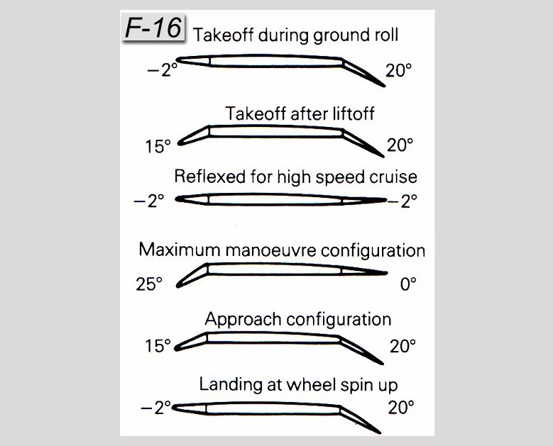 캠버가 커질수록 양력이 증가하는 반면 공기저항도 늘어나며, 작으면 공기저항이 줄어드는 대신 양력도 감소하게 됩니다. 전투기동 시처럼 고속비행을 해야 할 때는 공기저항이 작아야 하고 이륙과 착륙 시처럼 저속비행을 할 때는 양력이 커야만 하는데, Fly By Wire 같은 전자식 조종계통이 비행 특성에 따라 이를 판단한 뒤 플래퍼론을 조작하여 캠버의 크기를 변환함으로써 양력과 공기저항을 조절하게 되는 것이죠.