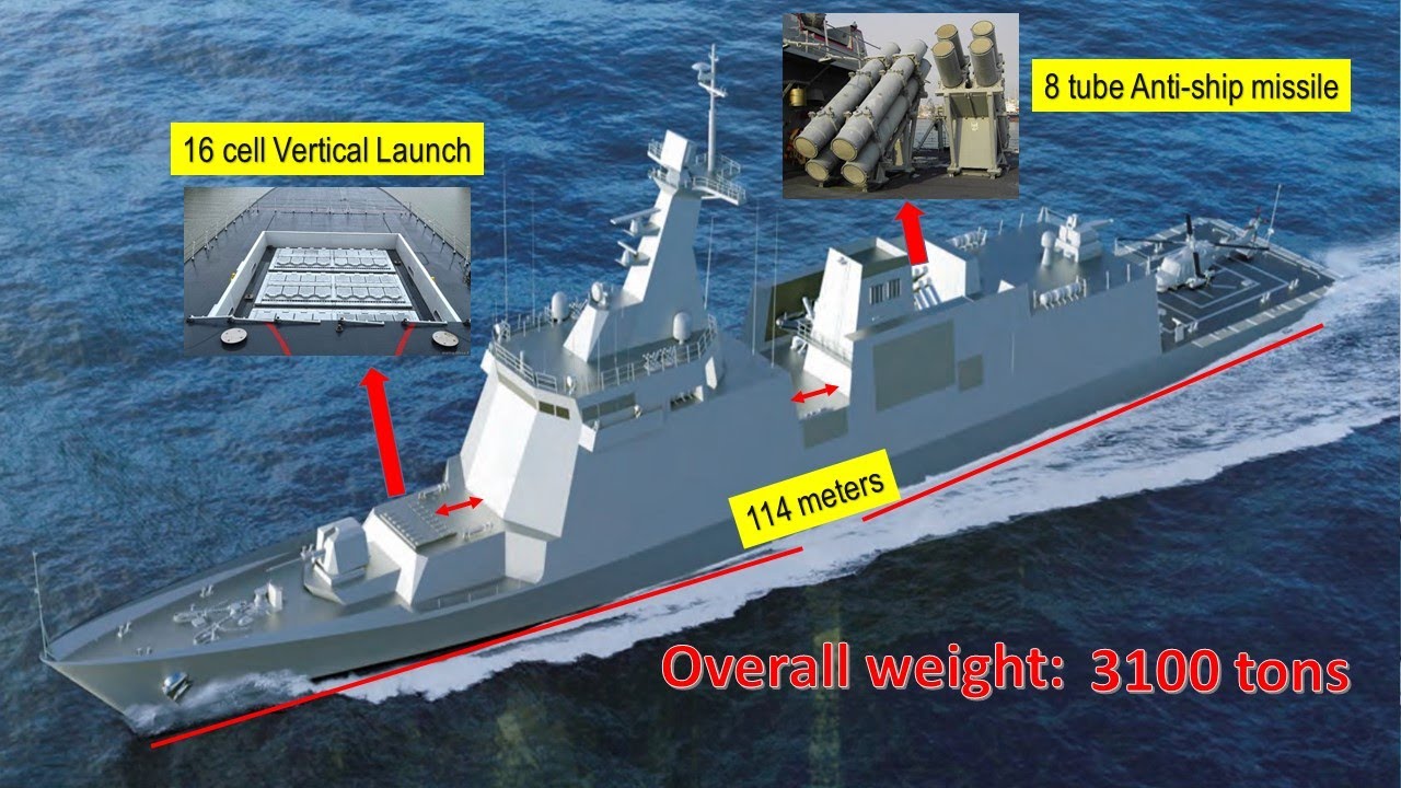 이 전투함은 최소 길이 114m, 폭 14.8m, 경하 배수량 3,100톤으로 호세 리잘급 호위함보다 더 크다. 비교를 위해 호세 리잘급의 제원을 소개해 보면 길이 107.5m, 폭 13.8m, 경하 배수량은 2,600톤이다.
